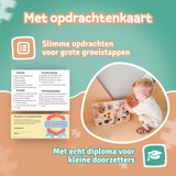 Maak samen nóg meer van elk speelmoment dankzij de bijgeleverde opdrachtenkaart. Hierop staan speelse challenges, tips en ideeën rond motoriek, sorteren, zintuigen en spelvormen. Zo haal je alles uit het bord en ontdek je samen steeds weer iets nieuws. Heeft je kind alle opdrachten geoefend? Dan wacht het officiële Busy Board diploma; een tastbare beloning voor kleine ontdekkingsreizigers!