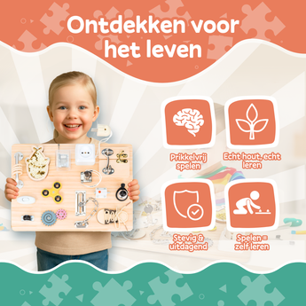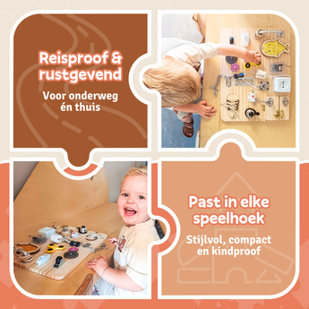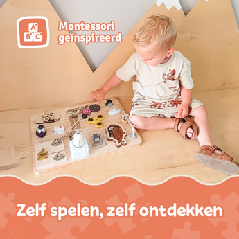 Het activiteitenbord is Montessori-geïnspireerd: kinderen leren door te doen, ontdekken en herhalen.