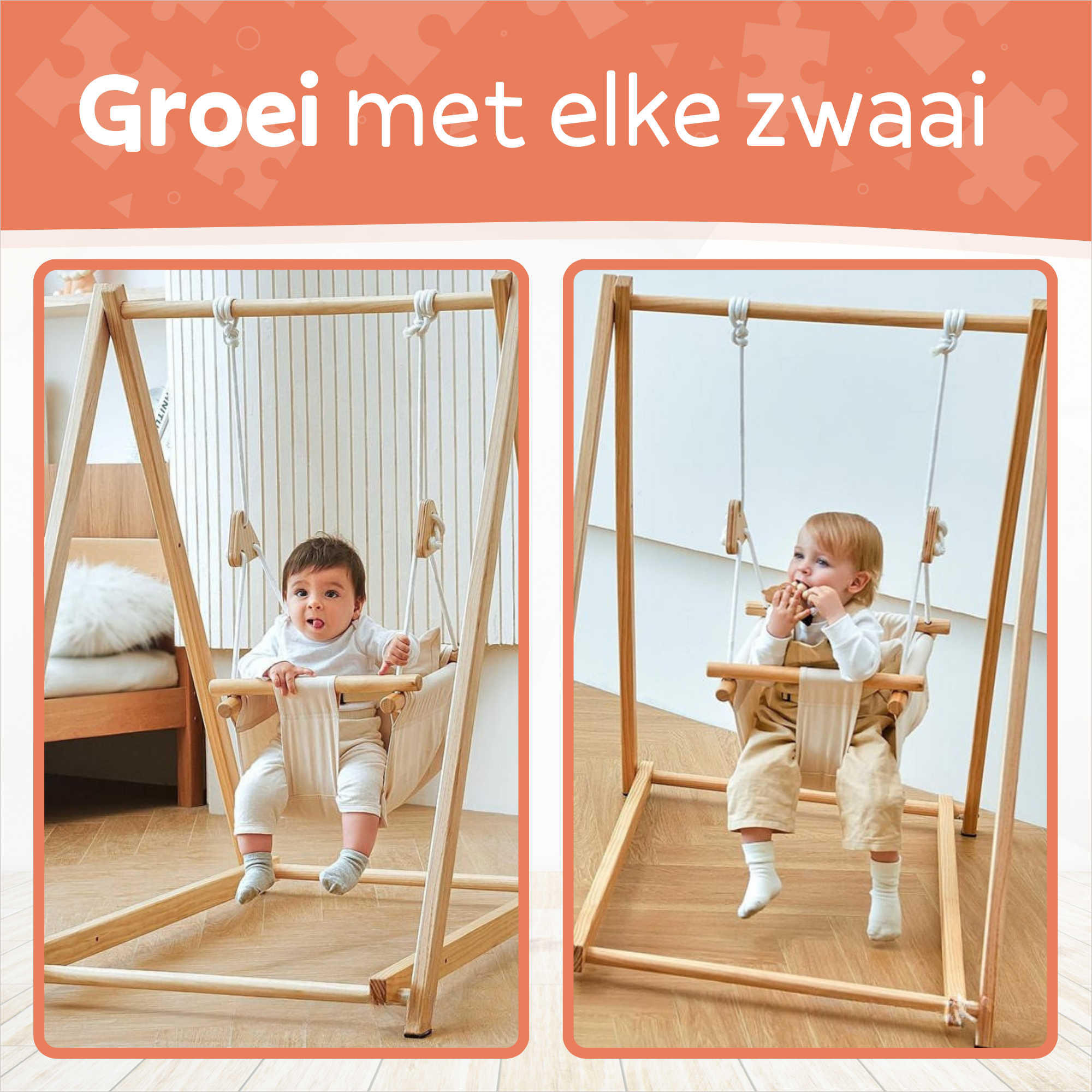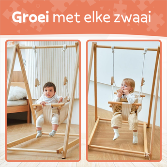Wat maakt deze houten babyschommel uniek?