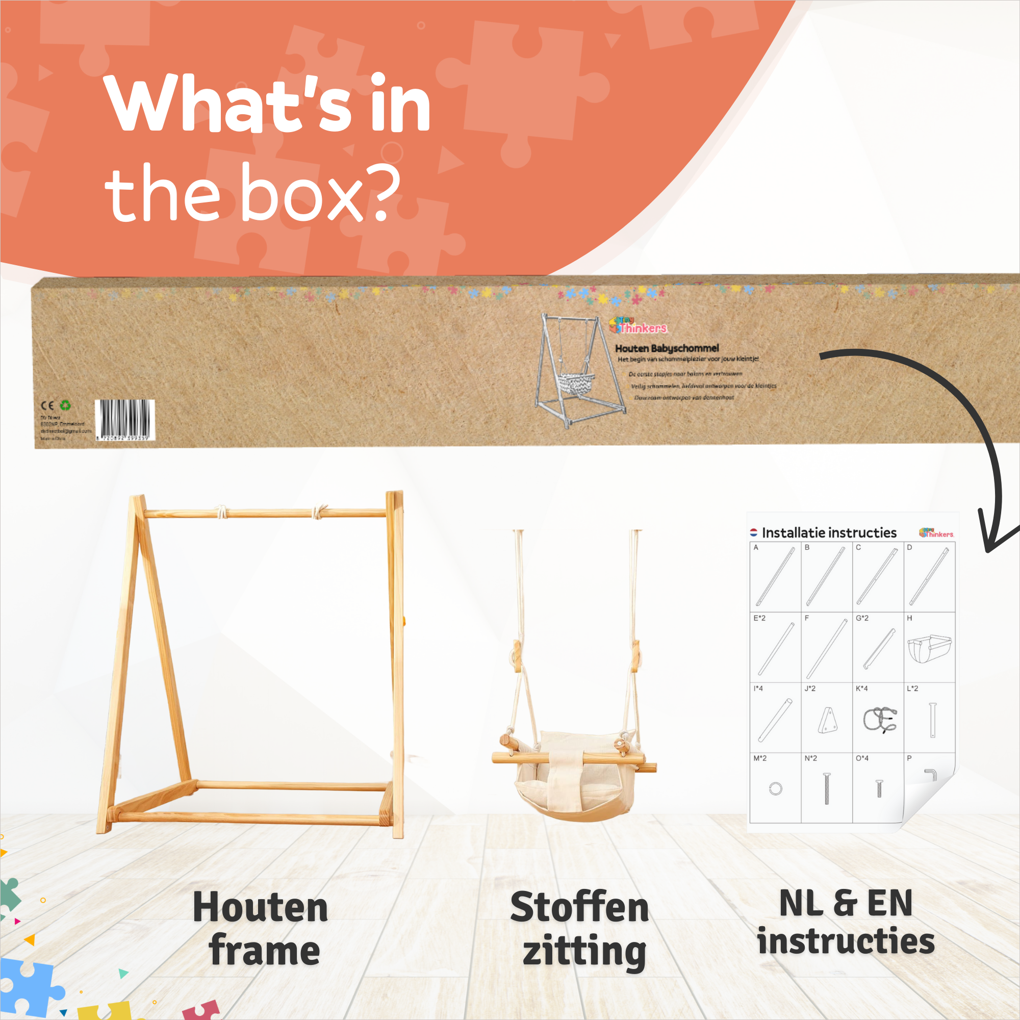 Als ouder wil je zeker weten dat je baby veilig én comfortabel schommelt. Het stevige dennenhouten frame, het zachte kussentje en de anti-slip poten zorgen voor stabiliteit en een gerust gevoel. Zo kan jouw kleintje heerlijk spelen of ontspannen, terwijl jij zorgeloos toekijkt.