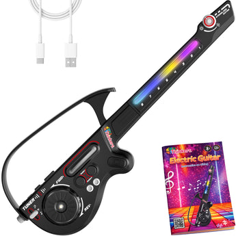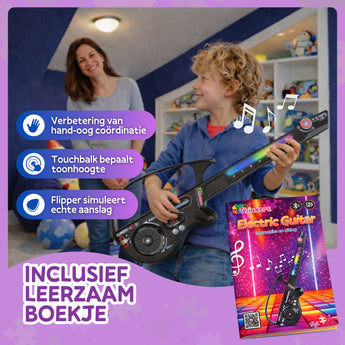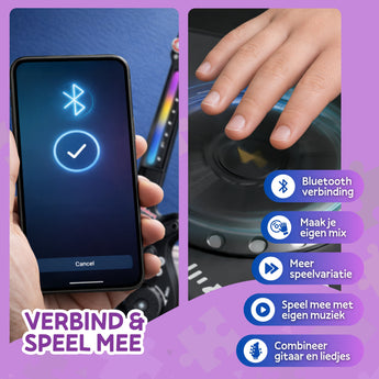 Inclusief leerboekje, oplaadbaar, DJ mixer functie, Bluetooth 5.0 verbinding, interactieve lichtknoppen én automatische ritmes in één! Deze elektrische gitaar voor je kind is hét muziek speelgoed waarmee kinderen hun eigen mini-concerten bouwen en direct “echte” beats laten klinken.